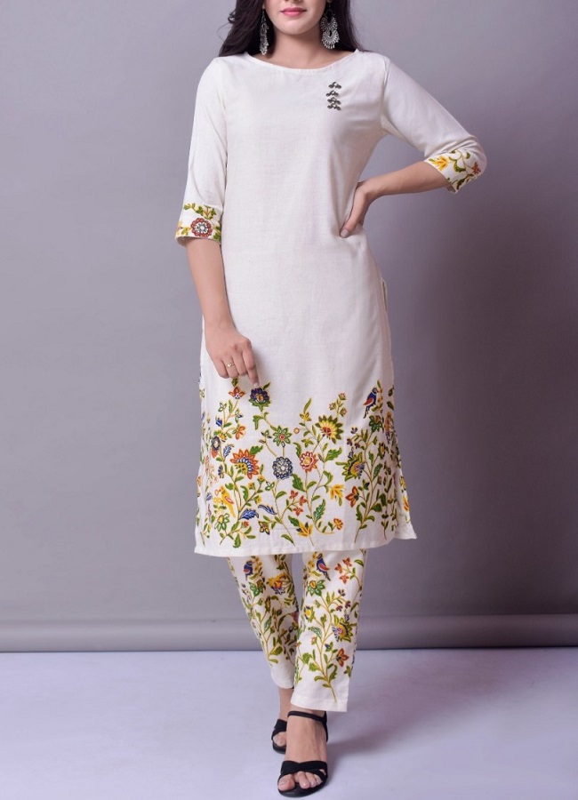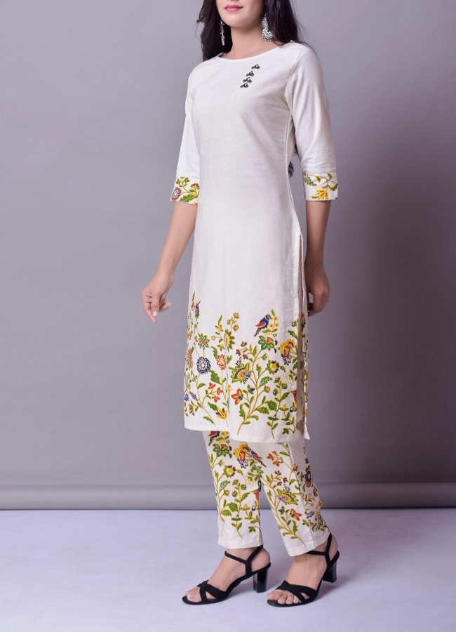 Premium cotton flax kurta along with pants enriched with multi print in kurta and pant and the kurta has metallic latkan on it